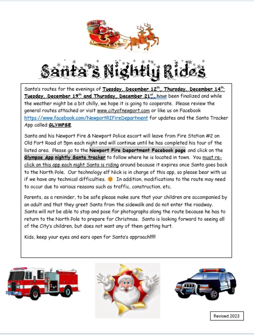Please visit the Fire Department's Facebook Page for updates on Santa's route & to download the City's official Santa Tracking App!