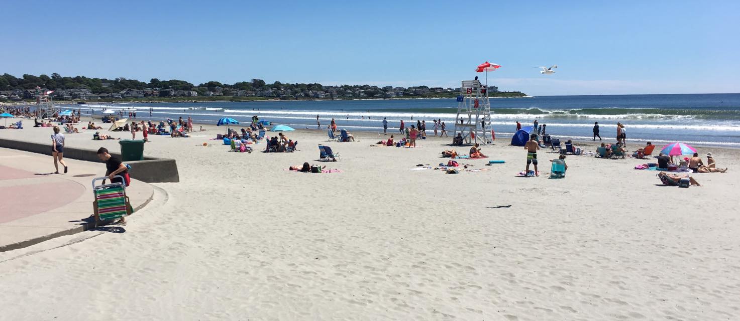 Relax and play on the white sand on the Atlantic ocean beach of Easton's Beach, commonly known as First Beach by Newport locals.